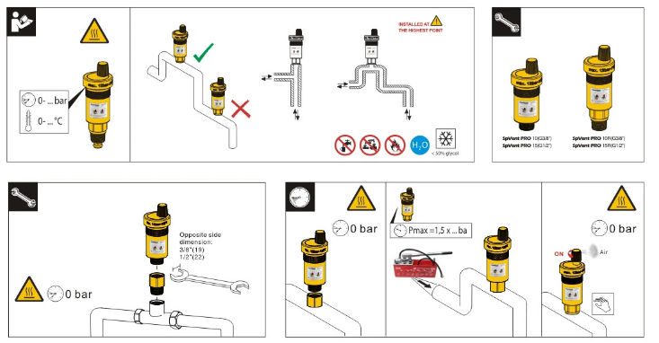 Работа воздухоотводчика — полностью автоматическая. После установки он функционирует без необходимости вмешательства, регулировки или технического обслуживания.