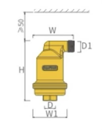 | Артикул | Размер резьбы | Подключение | W, мм | W1, мм | D1, мм | H1, мм | Давление, до Бар | Температура воды, до °C |