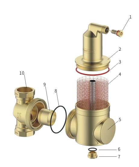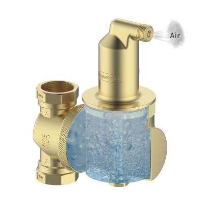- Ключевым элементом является специально разработанная спиральная сетка, обеспечивающая максимальное разделение воздушных включений при минимальных потерях давления — они настолько незначительны, что практически не влияют на гидравлическую стабильность системы.